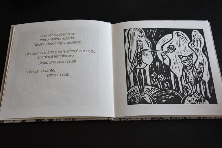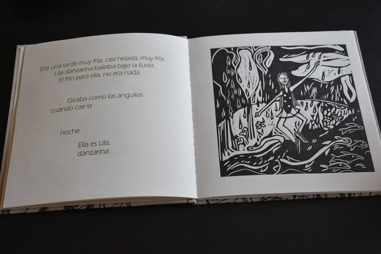 Lila danzarina is a book of illustrations (prints) and poetry. It is the third book published by Fa.editora. The first presentation was on Saturday, September 9, 2017 at El Espacio, where Roxana D'Auro and Leticia Barbeito shared their thoughts about the book with the public and the author. Many thanks to them and to everyone who came and shared among the printing presses, prints, books, and words..."