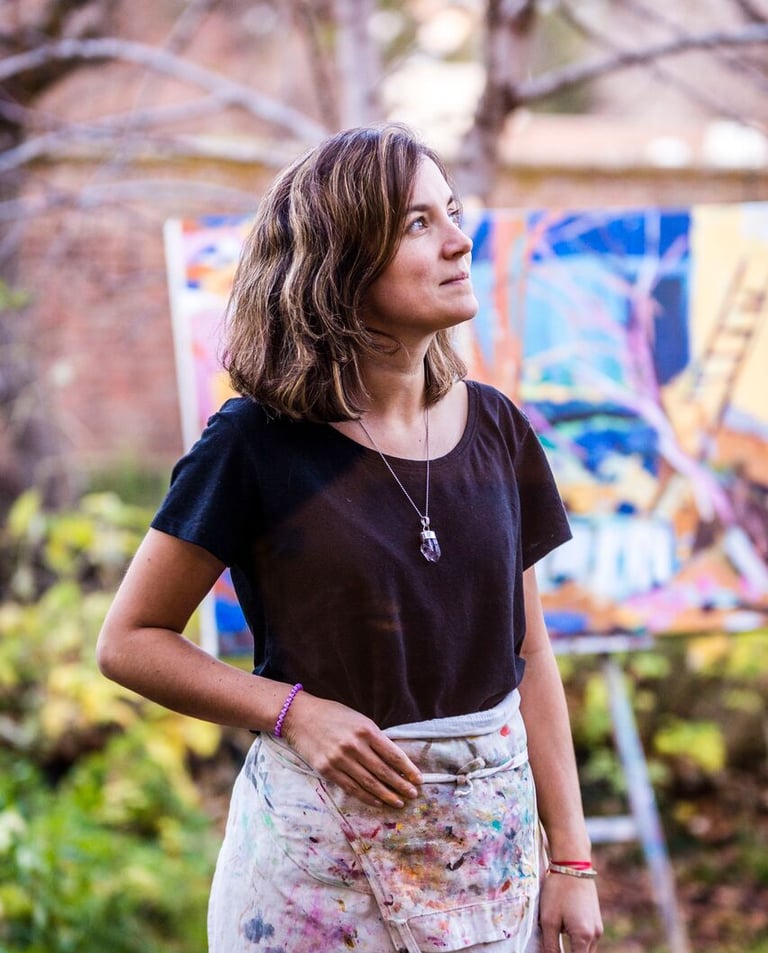 She works mainly from painting and investigates the fusion between visuality and poetry. She makes a dialogue between pictorial practice and writing.