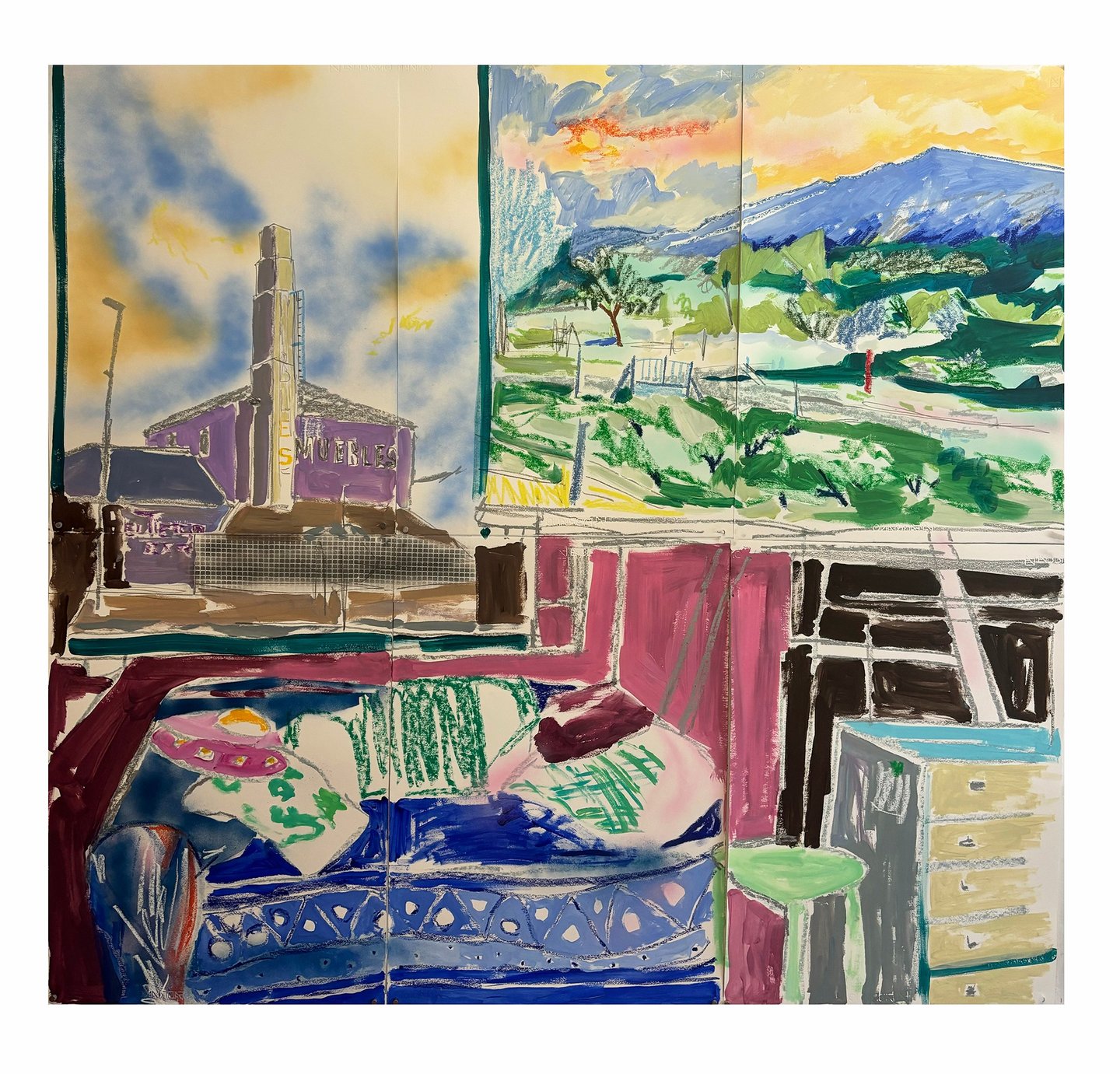 El cauce del Tiétar - técnica mixta sobre papel - 140x150cms - 2025.
