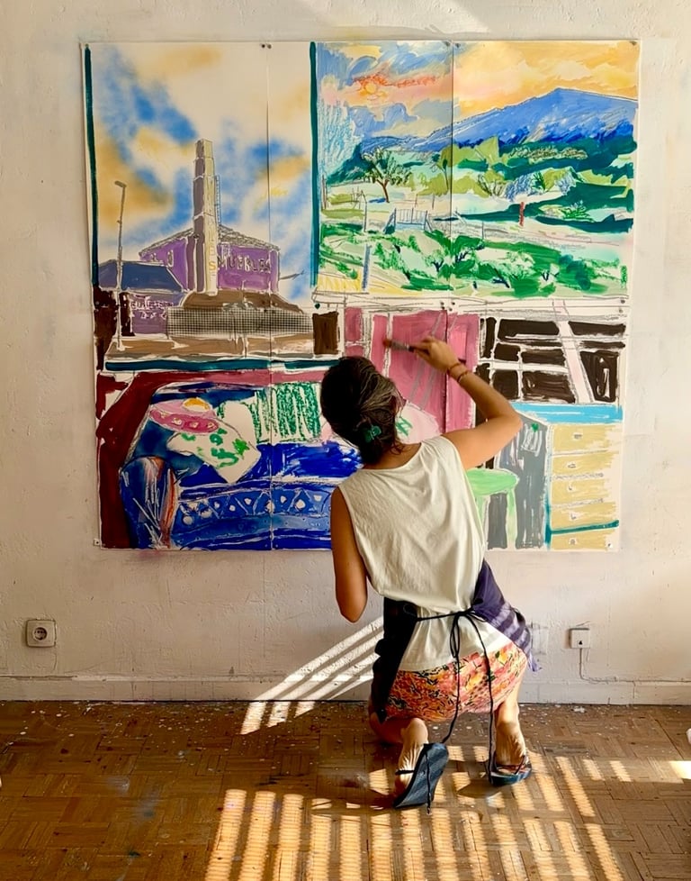 Actualmente trabajo investigando la fusión e intersecciones que se producen entre práctica pictórica y escritura poética. Esto me permite jugar con formas, colores y palabras, pensando el proceso artistico como un mundo que se va revelando mientras el tiempo y las preguntas van generando nuevas imágenes.