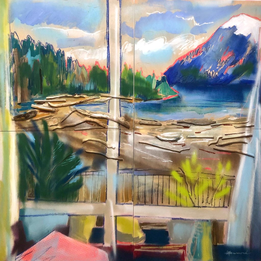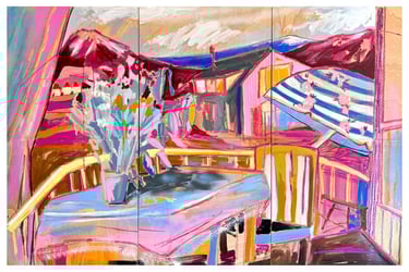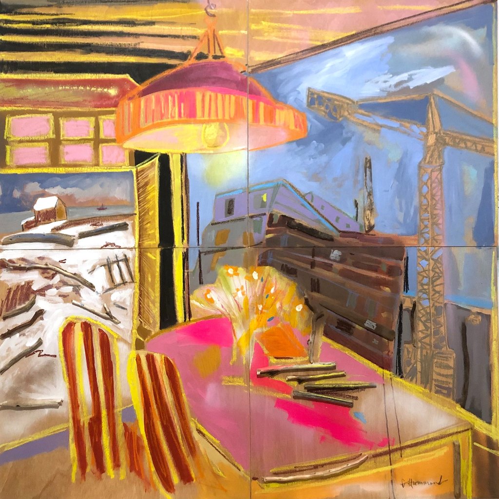 In these pieces, I connect images from personal photographic archives, models I assemble in the studio, and imaginary forms; I also add pieces of wood I collect in the forest to generate visual textures and volume.